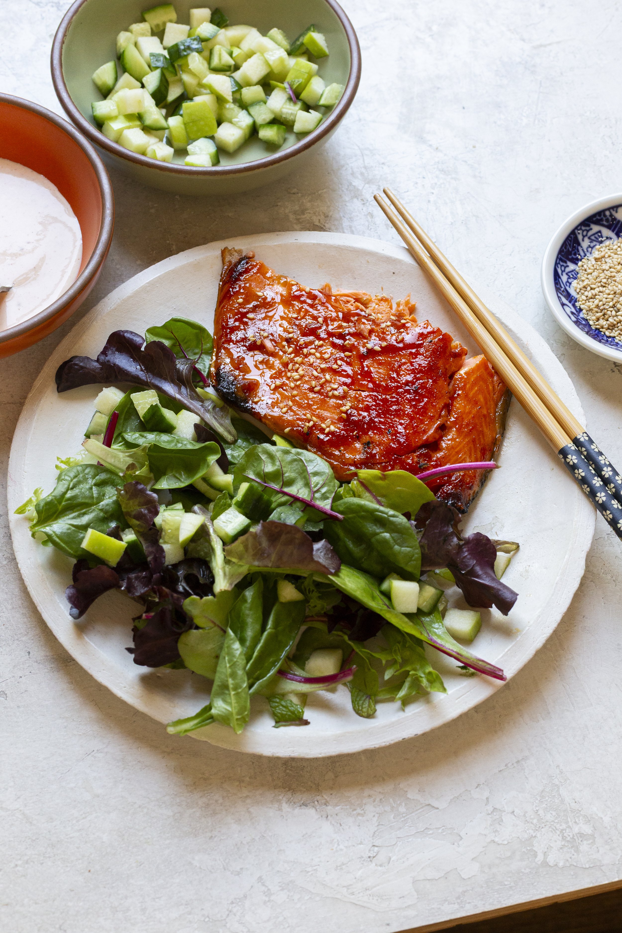 We are big fans of Korean flavors in the Gray household, because of our time spent living in South Korea. I try to find any way to incorporate the iconic Korean fermented chili paste, Gochujang, into our weekly menu. It is rather spicy but one way to round out the flavor is by using a sweetener such as honey or rice bran syrup.